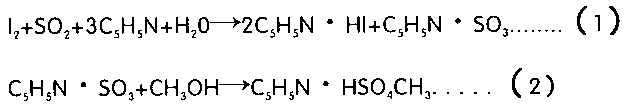 所有試劑溶液是由占優(yōu)勢的碘和充有二氧化碳的吡啶、甲醇等混合而成。通過電解在陽極上形成碘。所有生成的碘,依據(jù)法拉第定律,同電荷量成正比例關(guān)系。如下式: