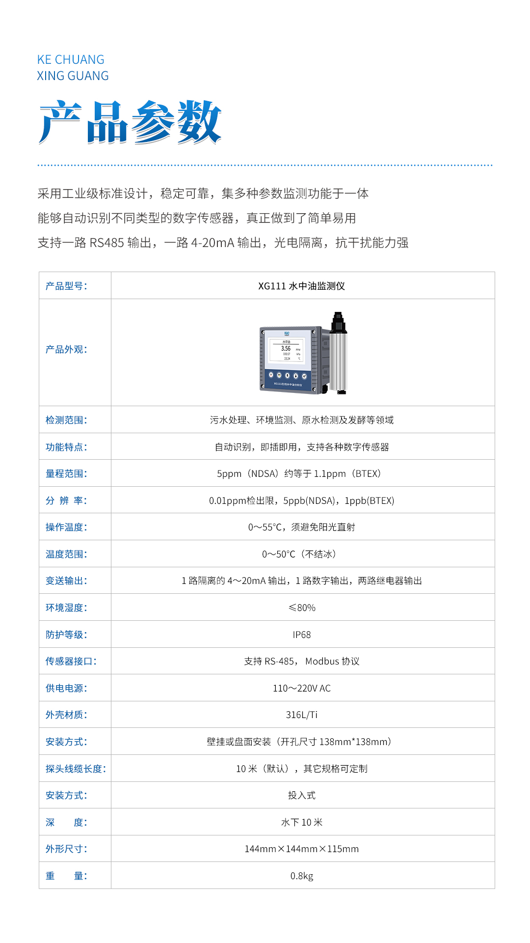 XG111 在線(xiàn)水中油監(jiān)測(cè)儀 產(chǎn)品詳細(xì)介紹