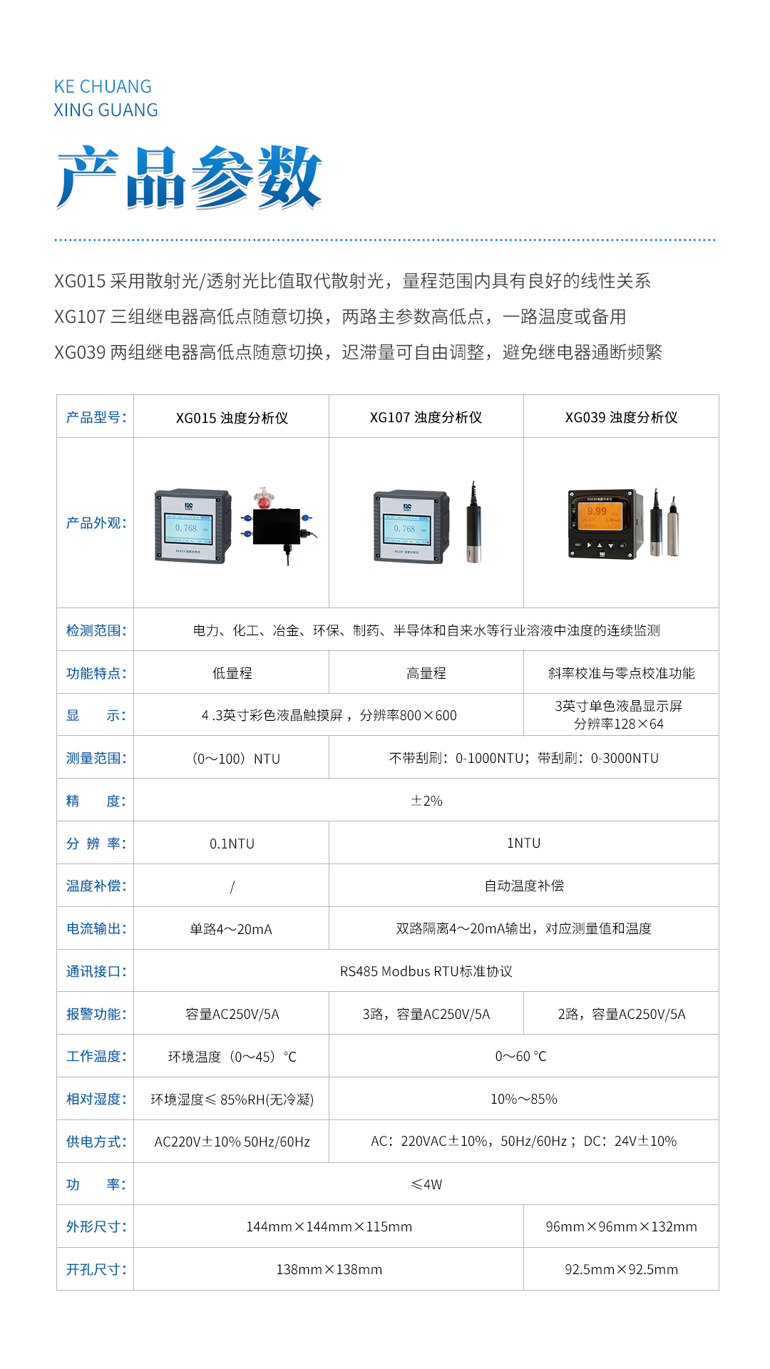 XG107 濁度分析儀(高量程) 產(chǎn)品詳細(xì)介紹