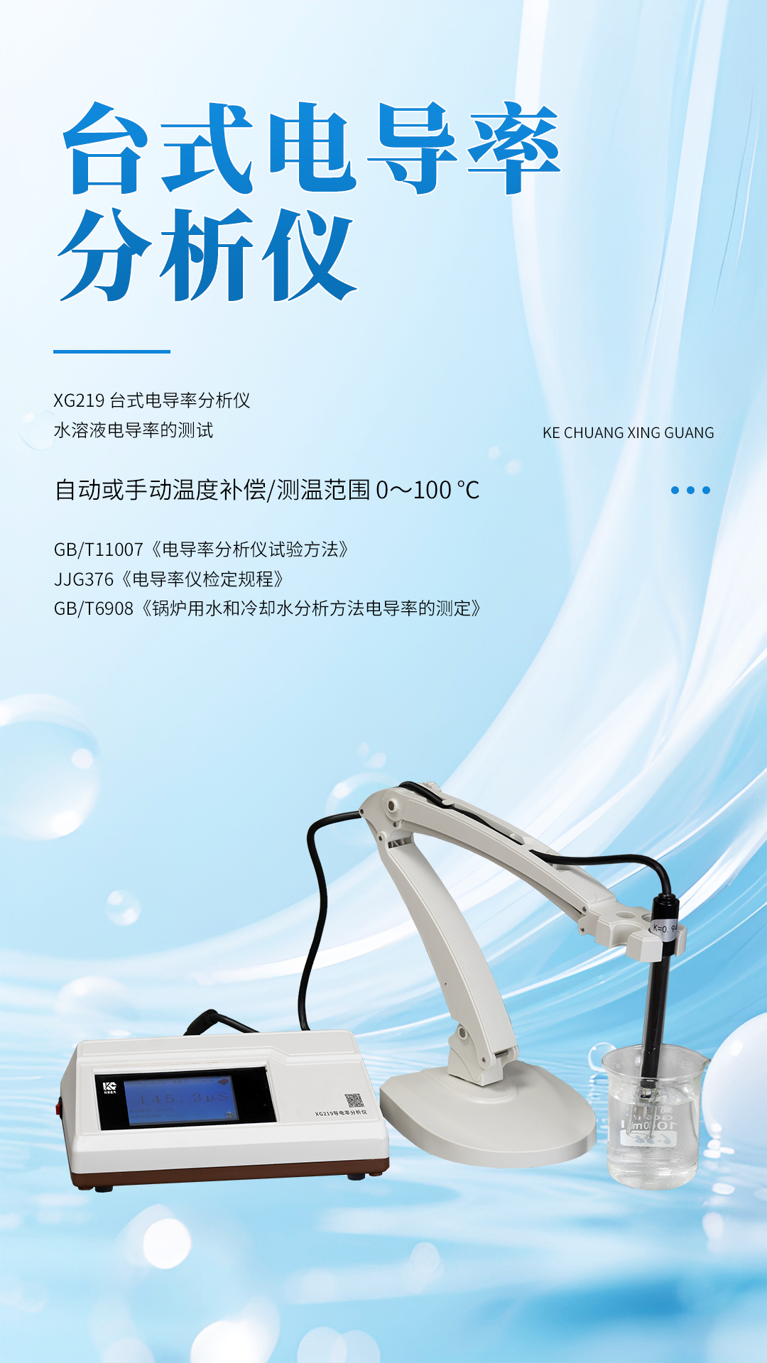 XG219 臺(tái)式電導(dǎo)率分析儀 依據(jù)GB/T11007《電導(dǎo)率分析儀試驗(yàn)方法》和JJG376《電導(dǎo)率儀檢定規(guī)程》標(biāo)準(zhǔn)設(shè)計(jì)制造,適用于GB/T6908《鍋爐用水和冷卻水分析方法電導(dǎo)率的測定》。應(yīng)用于火電、化工、冶金、環(huán)保、制藥、生化、食品和自來水等行業(yè)水溶液電導(dǎo)率的測試。
