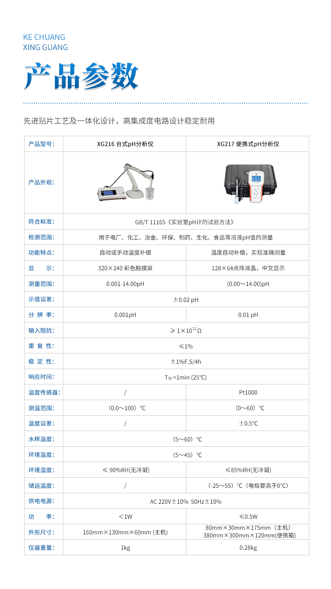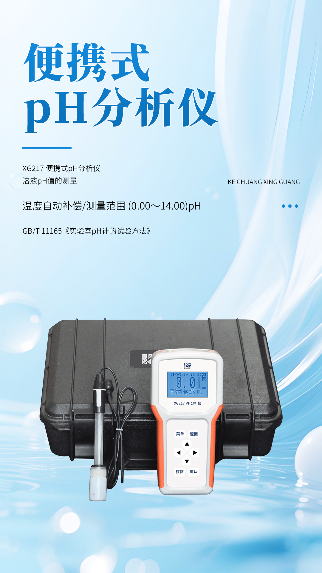 XG217 便攜式pH分析儀 符合標(biāo)準(zhǔn)GB/T 11165《實(shí)驗(yàn)室pH計(jì)的試驗(yàn)方法》,可用于電廠、化工、冶金、環(huán)保、制藥、生化、食品等溶液pH值的測(cè)量。