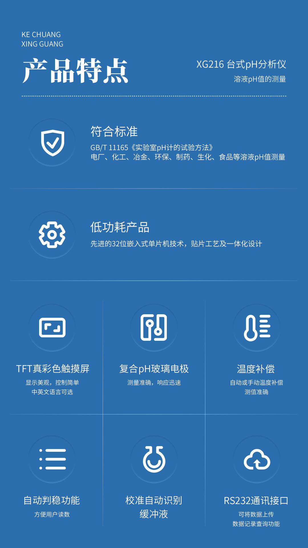 XG216型 臺(tái)式pH分析儀 符合標(biāo)準(zhǔn)GB/T 11165《實(shí)驗(yàn)室pH計(jì)的試驗(yàn)方法》,可用于電廠、化工、冶金、環(huán)保、制藥、生化、食品等溶液pH值的測(cè)量。